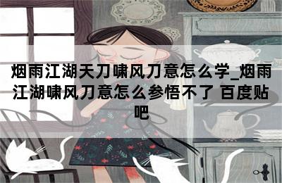 烟雨江湖天刀啸风刀意怎么学_烟雨江湖啸风刀意怎么参悟不了 百度贴吧